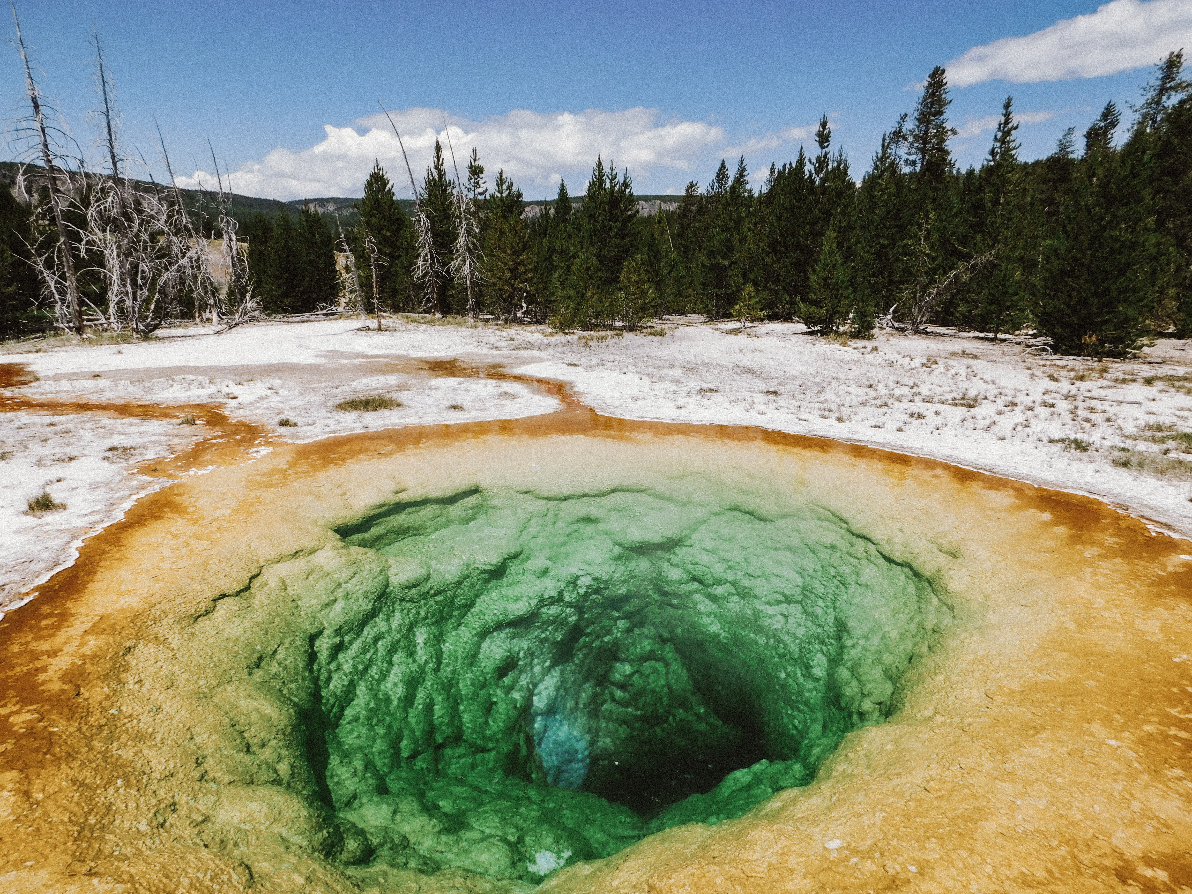 While Old Faithful is the most famous geyser in Yellowstone, there are hundreds of surrounding hot springs right next to it. You can take a stroll down any of the boardwalks that loop you around other beautiful hot springs, such as the Morning Glory.